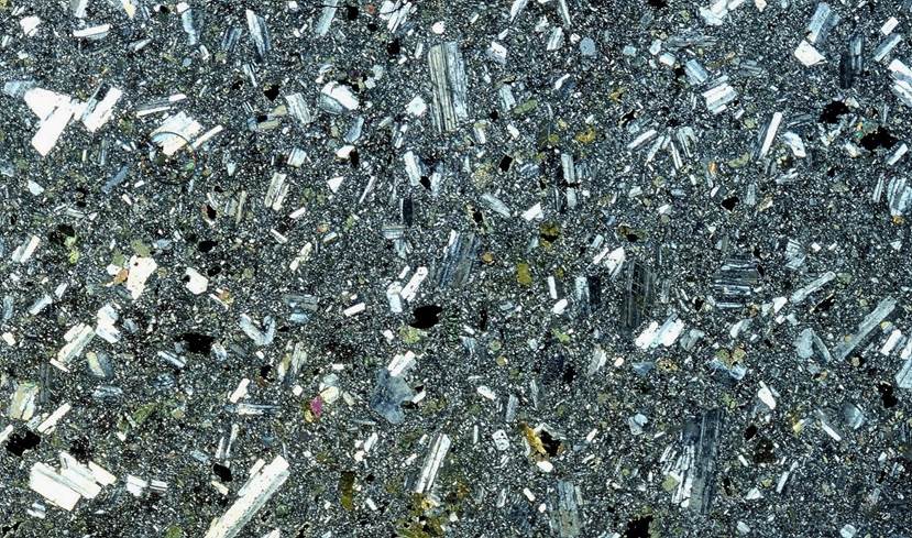 plagioclase feldspar), together with augite and rhombic pyroxene, the