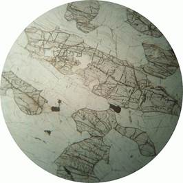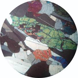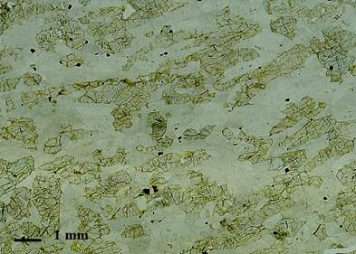 with subordinate clinopyroxene. The opaques are probably chrome-spinel.