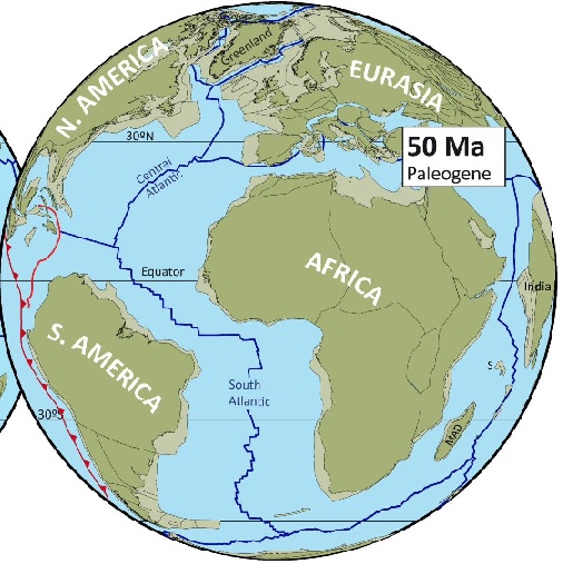 Notice how the North Atlanric is beginning to be “dragged open” resulting in Tertiary volcanic activity and