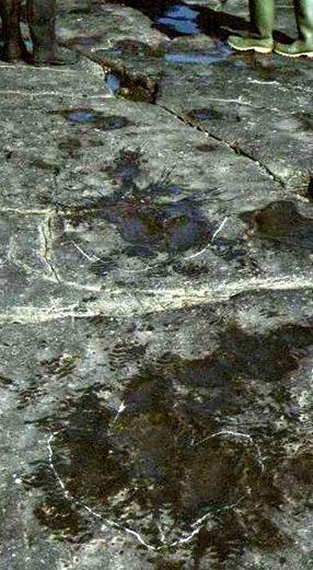 aid visibility, the footprints have been outlined with chalk.
