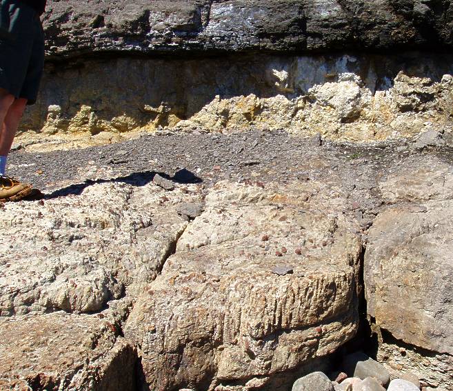 Photo above: Base of photo shows sandstone with many vertical burrows