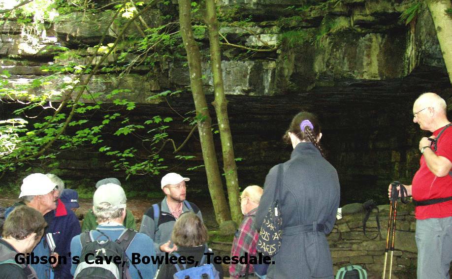 The Whin Sill forming the top of High Force Waterfall.WS = Whin Sill, S= metamorphosed sandstone, TBL= Tyne Bottom Limestone. Photo: courtesy, Derek Teasdale. Annotation: from Northumbrian Rocks & Landscape, Yorks. Geol. Soc.