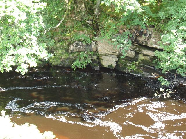 Examining junction between Tom Croft Limestone to the left and Ashell Sandstone to the right, both dippng upstream to the right. |