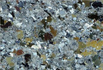 plagioclase feldspar (cloudy areas) and quartz, some of the latter