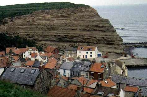 the table above. Check the tides before doing this traverse! Photo to the left shows part of Staithes village and Staithes Sandstone